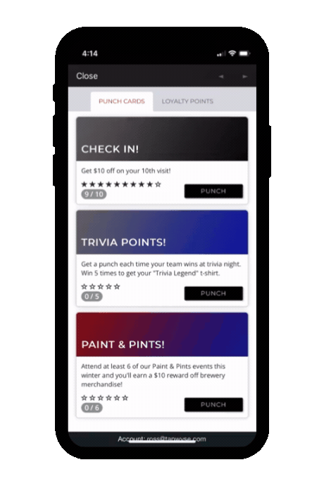 Turn every pint, visit & event into an opportunity to bring your guest back. Digital punch cards let you design programs to reward what matters most. Whether it’s putting more butts in seats, moving more pints, or building a band of loyal supporters, you’re in control. Here are just a few of our favorite ideas: